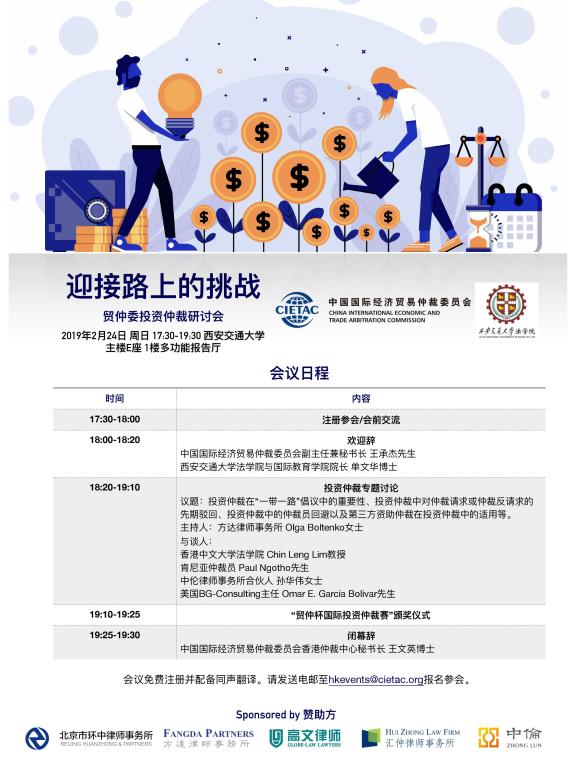 贸仲委投资仲裁研讨会暨“贸仲杯国际投资仲裁赛”颁奖仪式将于2019年2月24日下午5:30-8:00在乐动网页版主楼E座多功能报告厅举办,诚邀各位师生参加!