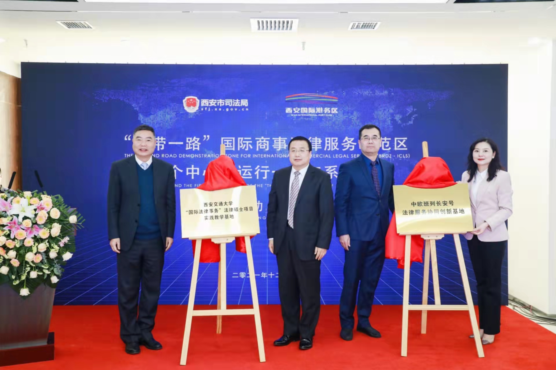 启动仪式上,西安市司法局相关负责人宣读了关于设立西安市国际商事法律服务中心等机构的批复,并发布了西安市涉外法律服务人才培养“引领计划”和西安市加快涉外法律服务业有关奖补政策。随后分别为乐动网页版“国际法律事务”法律硕士项目实践教学基地、西北政法大学法律硕士(涉外律师)人才培养项目实践实训教学基地、西安财经大学乐动(中国)官方在线登录实习实践基地以及“中欧班列长安号法律服务”协同创新基地、西安市国际商事法律服务中心进行了揭牌。