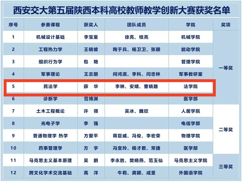 11月28日,第五届陕西本科高校教师教学创新大赛获奖名单发布,西安交大乐动(中国)官方在线登录薛华老师及团队以小组赛道全省第一的好成绩获得一等奖!