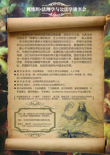基于以上种种考量,并配合学校“思想交大”建设和学院法理学和公法学的学科建设,乐动(中国)官方在线登录“立法与社会治理研究中心”发起创办“利维坦·法理学与公法学读书会”系列活动。本学期该活动选取的经典文本为让·博丹的《主权论》,并于10月18日晚7时在学院会议室举行了首场活动,乐动(中国)官方在线登录丁卫副教授、吉兰湘老师、彭何利博士、苏青博士、王朝恩博士、卞苏博士、唐学亮博士等10余位师生参加。主权理论是现代民族-国家兴起的理论前提,而民族-国家又是现代社会最重要的一个政治与法律现象,并与中国近代以来持续至今的伟大而艰难的国家转型勾连起来,因此,不得不察。在该场读书会活动中,主讲教师唐学亮针对博丹《主权论》一书的“导论”部分,就“为什么读博丹?”、“怎么读博丹?”、“博丹的思想里程与理论建构”以及“博丹理论的缺陷”等四个方面做了一个提纲挈领而又不失理论深度的学术报告。之后,就报告的内容及书中所启示的一些重大理论与现实问题,与会人员各自发表了自己的看法,并展开了热烈的讨论。首场读书会活动取得了预期的效果,我们将在两周后的同一时间举行第二场活动。“路漫漫其修远兮,吾将上下而求索”!