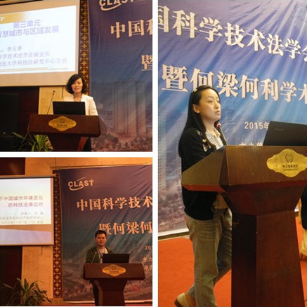 首先,乐动(中国)官方在线登录知识产权研究中心周方副教授、李晓鸣讲师、张磊博士作为乐动(中国)官方在线登录科技法学研究团队的代表,向2015年中国科学技术法学会年会进行主题汇报,报告的题目依次为《一带一路战略实施中的知识产权信息国际合作机制研究》、《完善我国外籍人士科学技术奖励制度的对策研究》、《治理学视野下城市环境恶化的科技法律应对》。三人的主题报告在大会上产生良好效果,形成了大会积极围绕讨论的主题内容,受到与会同行专家学者的一致好评。