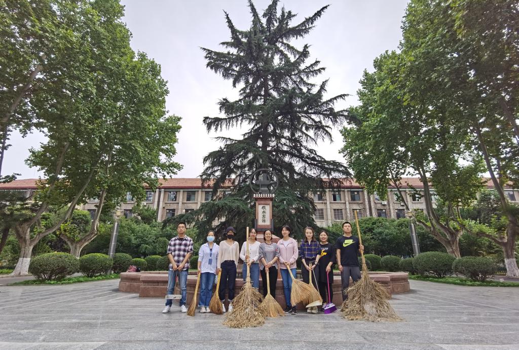 会议结束后,党员同志们集体前往学校北门,和学院入党积分子一起打扫中心楼前的花园,积极参与文明校园创建。
