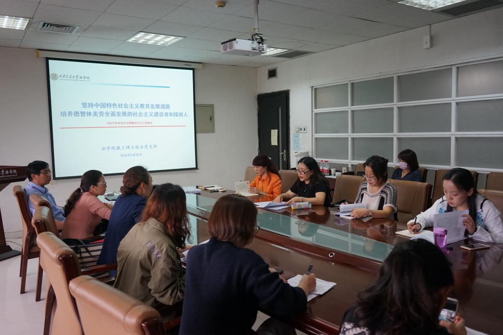 首先,吉兰湘老师带领党员集体学习了习近平总书记在全国教育大会上的讲话,领悟总书记在贯彻党的教育方针、坚持党对教育事业的全面领导、坚定理想信念教育、构建德智体美劳全面培养的教育体系、深化教育改革等方面对教育工作者提出的全面而具体的要求。