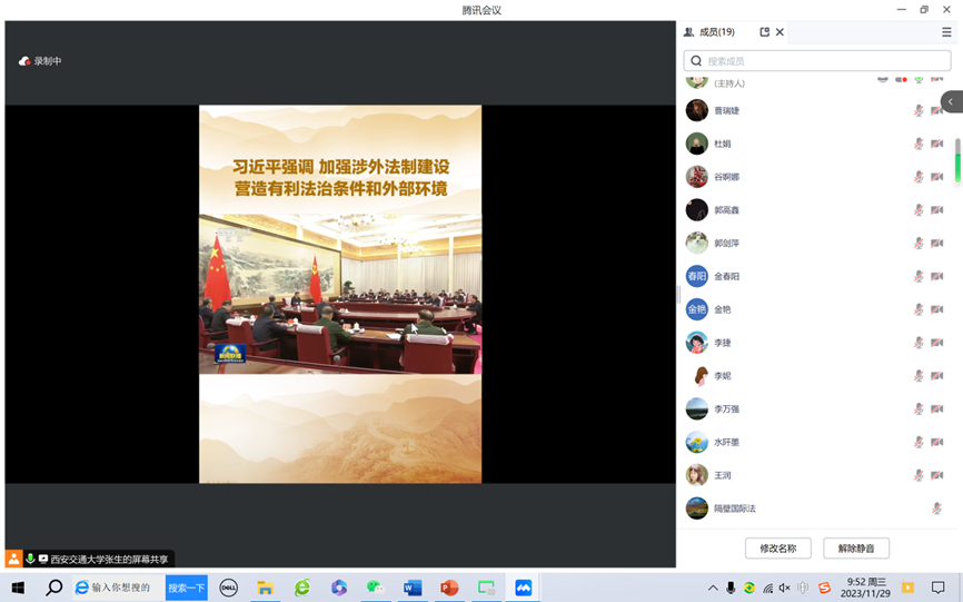 11月29日上午,乐动(中国)官方在线登录国际法所党支部召开专题组织生活会,集体学习习近平总书记在主持中共中央政治局第十次集体学习时重要讲话精神。会议以线上线下相结合的方式进行。