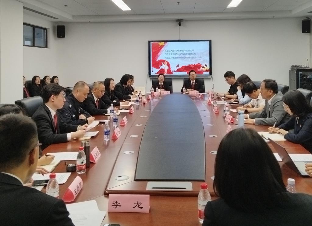 2024年4月15日,乐动网页版知识产权研究中心党支部联合西安市中级人民法院、新城区人民法院、碑林区人民法院、莲湖区人民法院、未央区人民法院、雁塔区人民法院、长安区人民法院知识产权审判庭党支部在中国西部科技创新港开展“党建工作暨服务保障新质生产力”座谈交流会。