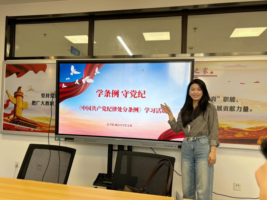 为深入学习贯彻习近平总书记关于党纪学习教育的重要讲话和重要指示精神,引导广大党员干部学纪、知纪、明纪、守纪,自觉用党规党纪校正思想和行动,帮助支部内党员同志深入学习理解、贯彻执行好《条例》,2024年4月25日下午,乐动(中国)官方在线登录硕3191党支部全体党员于涵英楼5-3001开展了题为“学条例·守党纪”的《中国共产党纪律处分条例》学习活动。