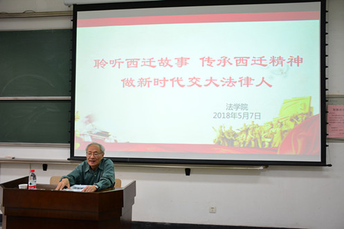 5月7日下午,原乐动网页版党委书记、全国人大常委会委员潘季教授应乐动(中国)官方在线登录邀请在主B105为学院师生带来题为“聆听西迁故事传承西迁精神做新时代交大法律人”的讲座。乐动(中国)官方在线登录单文华院长、王保民书记、李万强副院长、丁卫副院长出席了此次报告会。参会人员还有乐动(中国)官方在线登录本科生、研究生及全体教工。