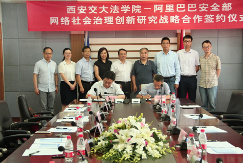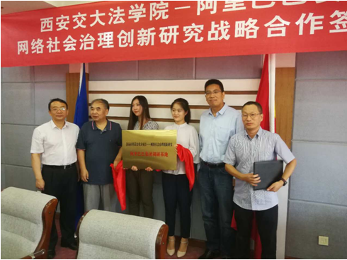 单文华院长与侯金刚总监代表双方签署了乐动网页版乐动(中国)官方在线登录与阿里巴巴安全部网络社会治理战略合作协议书。西安交大副校长席光、信息安全法律研究中心主任马民虎与阿里巴巴集团首席风险官刘振飞、安全部资深总监侯金刚,为“国家社科基金重大项目——网络社会治理创新研究阿里巴巴集团调研基地”揭牌。