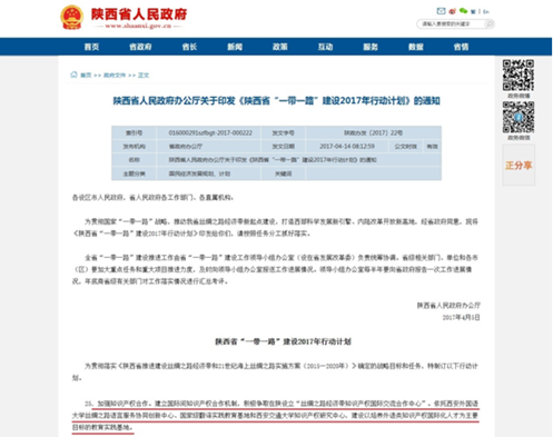 陕西省人民政府办公厅日前印发了《陕西省“一带一路”建设2017年行动计划》,明确指出要加强知识产权合作,建立国际间知识产权合作机制,积极争取在陕设立‘丝绸之路经济带知识产权国际交流合作中心’,依托乐动网页版知识产权研究中心、西安外国语大学丝绸之路语言服务协同创新中心和国家级翻译实践教育基地,建设以培养外语类知识产权国际化人才为主要目标的教育实践基地。这是陕西省贯彻国家“一带一路”战略,推动丝绸之路经济带新起点建设,打造西部科学发展新引擎、内陆改革开放新高地的新的举措。