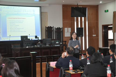 彭何利副教授的讲座主题为《中国法院制度与司法改革实践》。她首先全面介绍了我国人民法院的组织体系、内设机构、审判组织、法官制度与人民陪审员制度。接着,她以刑事审判活动为例,系统讲述了我国的两审终审制度、审判监督程序以及死刑复核程序等。最后,结合当前我国司法改革实践,彭何利副教授对最高人民法院巡回法庭的设置、多元纠纷解决机制、员额制改革、司法责任制改革、以审判为中心的诉讼制度改革等重点问题进行了全方位的解读。