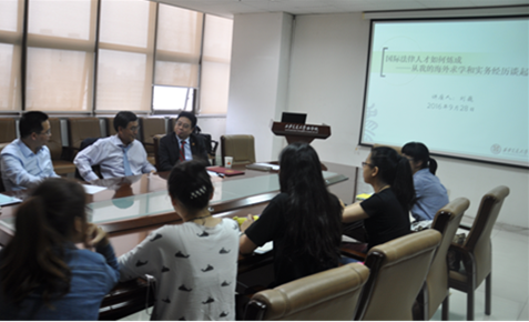 随后,刘律师以“杰出国际法律人才如何炼成——从我的海外留学和实务经历谈起”为题作了精彩的学术讲座。讲座内容分为“求学记忆”和“实务经历”两个部分,刘巍律师从自己的成长道路谈起,向同学们讲述自己如何一步一步求学,走上法律的道路,并逐渐成为一名实务界的精英的经历。随后,他结合当今国内的实务环境,对同学们提出两点建议,一是无论是从事学术研究还是法律实务,都应当坚持信念、坚定目标、矢志不渝,一是在当下竞争激烈的环境下,应提高自身素质,以应对高强度的工作环境。