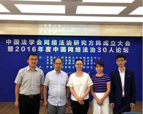 2016年8月28日,中国法学会网络法治研究方阵举行成立大会暨2016年度中国网络法治30人论坛。西安交大信息安全法律研究中心成功入选中国法学会“网络法治研究方阵”理事单位,成为全国五家理事单位之一。校社科处处长贾毅华、学院丁卫副院长受邀参加成立大会并致辞,信息安全法律研究中心副主任王玥副教授带领研究团队成员博士生马宁、党家玉参加论坛。开幕式由中国社科院文化法制研究中心主任、中国法学会互联网与信息法学会副会长周汉华主持。中国法学会研究部主任李仕春、中国法学会副会长李林、中国信息通信研究院政策与经济研究所所长鲁春丛、中南大学乐动(中国)官方在线登录院长陈云良、乐动网页版社科处处长贾毅华、华东政法大学刑事司乐动(中国)官方在线登录副院长王永全分别作为方阵理事单位代表致辞。