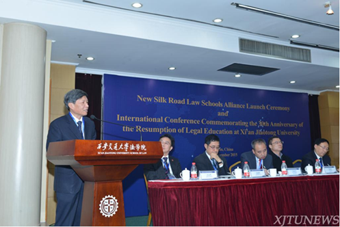 中国法学会副会长张文显代表中国法学会、中国法学教育研究会对西安交大法学学科复办三十周年和“新丝路乐动(中国)官方在线登录联盟”的成立表示祝贺。他说,西安交大办学历史悠久,是我国最早开展法学教育的高等教育机构,为国家培养了大批杰出法学人才。自1985年复办法学学科以来,西安交大乐动(中国)官方在线登录现已成长为中国法学研究的重要基地之一,为中国法学建设做出了突出贡献。随着“一带一路”战略构想的提出,国内法制与国际法制深度融合也必将呈现出更大、更新的趋势,因此“新丝路乐动(中国)官方在线登录联盟”成立的意义重大,前景广阔。他希望联盟成员能同心协力,将联盟办成具有国际影响力和现实感召力的乐动(中国)官方在线登录校交流合作的平台,成为我国法学教育对外交流合作和国际法学交流互联互通的新门户。中国法学会将对其给予重点关注和支持。