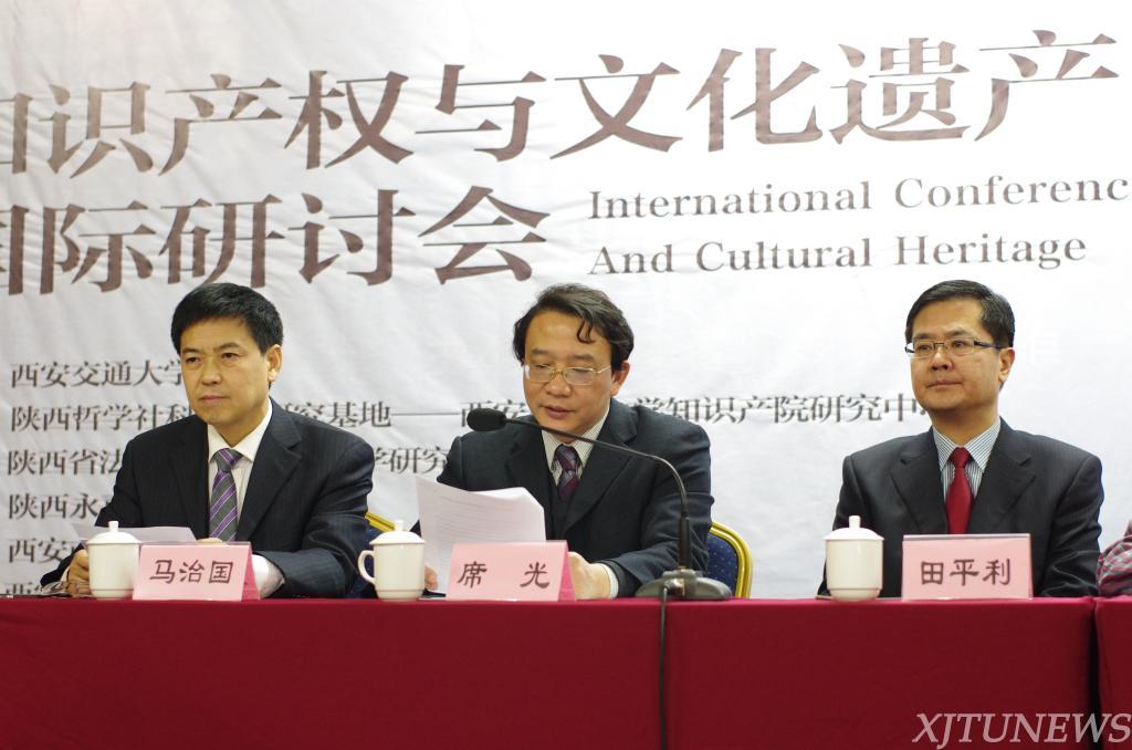 西安交大知识产权研究中心主任马治国教授致欢迎词,他对出席本次会议的国内外专家学者和业界同仁表示热烈的欢迎和真挚的感谢,并指出知识产权是一个动态发展和逐步深化的研究领域,希望大家在这个交流对话的平台上,就一些学术体会相互交流,彼此之间开展真诚而务实的多视角畅谈,零距离接触,从而为今后的学术研究开辟新的视野,他还对交大知识产权研究中心基本情况做了介绍。田平利副院长代表省高级人民法院向本次研讨会的召开表示祝贺,指出了知识产权发展的重要性和目前面临的重大难题,在文化遗产领域亟需知识产权对文化遗产的保护,并预祝本次研讨会圆满成功。席光副校长代表西安交大对国内外知识产权领域的专家学者参加本次国际研讨会表示热烈欢迎,他简要介绍了西安交大法学专业的办学历史以及知识产权研究中心所取得的成绩,表示学校将一如既往的支持、鼓励人文社会科学特别是知识产权学科的发展。省科技厅孙科副厅长、省法学会雷宝生专职副会长等也在开幕式上作了精彩发言。