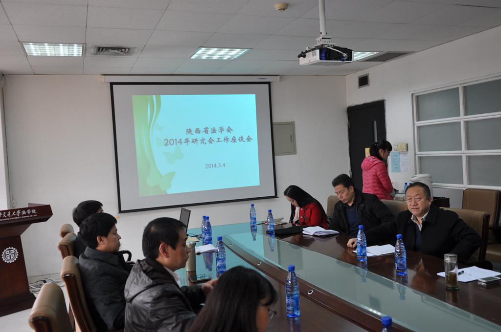 2014年3月4日下午,“陕西省法学会2014年研究会工作座谈会”在我校乐动(中国)官方在线登录主E910会议室召开,陕西省法学会专职副会长雷宝生,秘书长马艾妮,研究部主任魏清利,办公室主任樊志来等法学会领导参加了会议。陕西省法学会挂靠我校乐动(中国)官方在线登录的“科技法研究会”、“信息安全法研究会”、“立法学研究会”和“能源法研究会”的会长和秘书长应邀参加了座谈会。会议由陕西省法学会专职副会长雷宝生主持。
