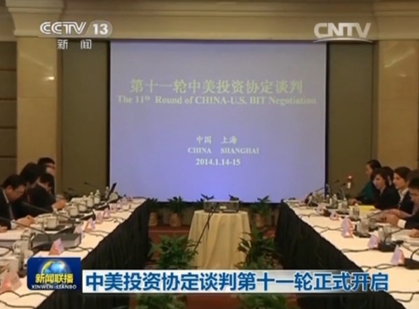 据中央电视台2014年1月14日《新闻联播》报道,第十一轮中美投资协定谈判于当日在上海举行。此轮谈判是继去年7月中美双方进入实质性谈判后的第二轮谈判。中方代表团由商务部牵头,二十多个部委派员组成,美方代表团由美国贸易代表办公室和美国国务院牵头。中美双方就投资市场的开放、投资权益的保护、各类投资者公平竞争以及投资者遇到问题的争端解决等问题展开谈判。中方谈判代表团团长李成刚表示这轮谈判和之前相比进入了一个新的阶段,即文本谈判阶段,也即两国的工作团队已经开始起草协定条款。中方谈判代表团负责人表示,中美投资协定谈判的意义堪比当年的入世谈判,入世解决的是贸易的对外开放,而投资协定谈判解决的是投资管理体制改革和对外投资领域的开放,因此挑战更大,影响将更为深远。