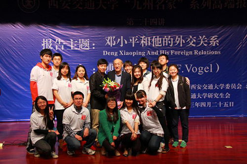 4月25日,由校团委和乐动(中国)官方在线登录共同主办的乐动网页版“九州名家”高端论坛专场报告会第二十四讲在主楼多功能报告厅举行,邀请美国哈佛大学亨利·福特二世社会学荣休教授、费正清东亚中心前主任、《邓小平时代》作者傅高义(Ezra F. Vogel)教授与西安交大师生分享“邓小平和他的外交关系”。党委书记王建华出席报告会并为傅高义先生赠送纪念品。报告会由乐动(中国)官方在线登录王江雨教授主持。乐动(中国)官方在线登录2074、2113班党支部全体成员担任会务工作。