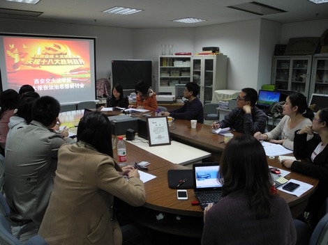 11月20日晚8点,乐动(中国)官方在线登录举办了学习十八大报告法治思想研讨会,由学院副院长、知识产权研究中心主任马治国教授、李晓鸣讲师组织,部分博士、硕士参加。