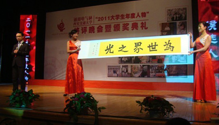 此次评选活动获得了校内外多家单位的大力支持,并吸引了全校17个学院、8个书院的学生参加。在经历了海选之后,由我院推荐的齐鹏同学成功晋级最后的终评环节。在终评环节的个人展示中,齐鹏同学通过视频短片、主持人提问和现场书法展示赢得了在场评委、学生观众的一致好评,最终齐鹏同学获得了通用电气杯乐动网页版2011年度人物提名奖。
