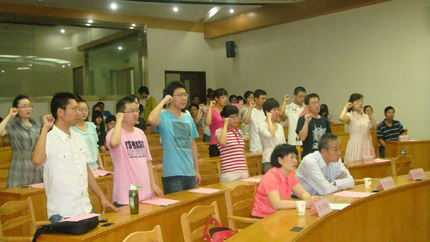 7月1日上午,乐动(中国)官方在线登录党总支庆祝建党90周年暨新党员入党宣誓大会在主楼A103隆重举行。党总支书记彭沪生,副书记、副院长王保民,院长助理吉兰湘及学生工作专职委员张乃钟老师出席会议,乐动(中国)官方在线登录全体研究生参加了大会,会议由王保民主持。