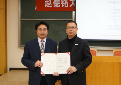 日前,上海昊理文律师事务所高级合伙人赵德铭律师来我院访问。12月20日下午,在主楼A103教室,赵德铭博士受聘为我校兼职教授,并面向乐动(中国)官方在线登录师生做 《高端法律服务市场上商务律师的典型与非典型特征——从并购项目谈起》专题学术报告。乐动(中国)官方在线登录院长单文华教授向赵博士颁发了兼职教授证书,并为赵博士佩带了校徽。授聘仪式由乐动(中国)官方在线登录副院长王保民教授主持。