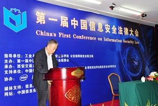 随后,工业与信息化部信息安全协调司副司长欧阳武先生、中国计算机安全专业委员会严明主任、陕西省法学会专职副会长雷宝生先生分别作重要讲话。