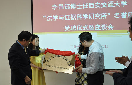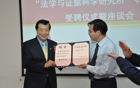 10时整,李博士的受聘我校“法学与证据科学研究所”(ILES,“法证据所”)名誉所长仪式在主楼E910会议室隆重举行。仪式由乐动(中国)官方在线登录院长单文华教授主持。徐宗本副校长、国际处梁莉处长、乐动(中国)官方在线登录党委书记彭沪生、ILES所长李生斌教授和马治国教授以及乐动(中国)官方在线登录王保民副院长出席了仪式。在热烈的掌声中,徐宗本副校长代表学校向李昌钰博士颁发了聘书,并同李博士一起为我校“法学与证据科学研究所”揭牌。李昌钰博士将一条美国康州警政厅的警官领带赠与徐宗本副校长,他还向在场的其它几位学院领导赠送了礼物。徐副校长发表了热情洋溢的讲话,他首先对李博士的访问表示感谢,并对李博士的受聘表示祝贺,希望李博士能把他的真知灼见,经验智慧传授给我校广大师生。他指出,“事是靠人做出来的”,希望在李博士的指导和支持下,乐动(中国)官方在线登录和医学院法医学科充分发挥各自优势,把“法学与证据科学”这个新兴的交叉学科做好做强。李博士也发表了热情洋溢的讲话。他首先以DNA立法为例,充分肯定了法学与法医学开展学科合作,成立法学与证据科学研究所的重要意义。他指出当代科学研究的发展已经把两个学科紧密地联系在一起,法学和法医携手开展证据科学等交叉学科研究,是两个学科保持前沿性,培植学科新增长点的重要举措。他表示,“能够担任贵所所长是我的荣幸”。他说,“很多地方想以我的名字命名成立研究所等,但我都拒绝了。我想,以人的名字命名很容易,但一个人要想真正做点事却很难。就像生小孩一样,要培养他,让他健康成长,所以,我以后会尽力为大家做好服务,也欢迎大家到美国,到我的学校来。”随后,李教授与乐动(中国)官方在线登录师生进行一场以“法学与证据科学”为主题的座谈会。座谈会上,李博士幽默风趣,侃侃而谈。老师和同学们踊跃发言,与李博士的讨论热烈而有趣。最后,单文华院长作了总结发言。老师和同学们意犹未尽,都觉得学到了很多书本上没有的知识。