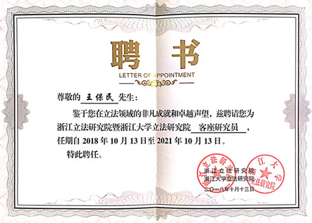 10月13日,首届之江立法论坛暨立法研究院学术委员会成员、客座研究员、兼职研究员聘任仪式在浙江杭州举办。论坛以“新时代地方立法”为主题,以推进立法领域高层次理论研究,提升立法研究水平,推动立法工作,以更好的适应新时代新要求。我校乐动(中国)官方在线登录教授、立法与党内法规研究中心主任王保民受聘为“浙江立法研究院暨浙江大学立法研究院”客座研究员,并应邀作为与谈人在论坛上做了点评发言。