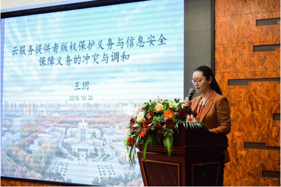 乐动网页版信息安全法律研究中心副主任王玥作了《云服务提供者版权保护与信息安全保障义务的冲突与调和》的主题发言。