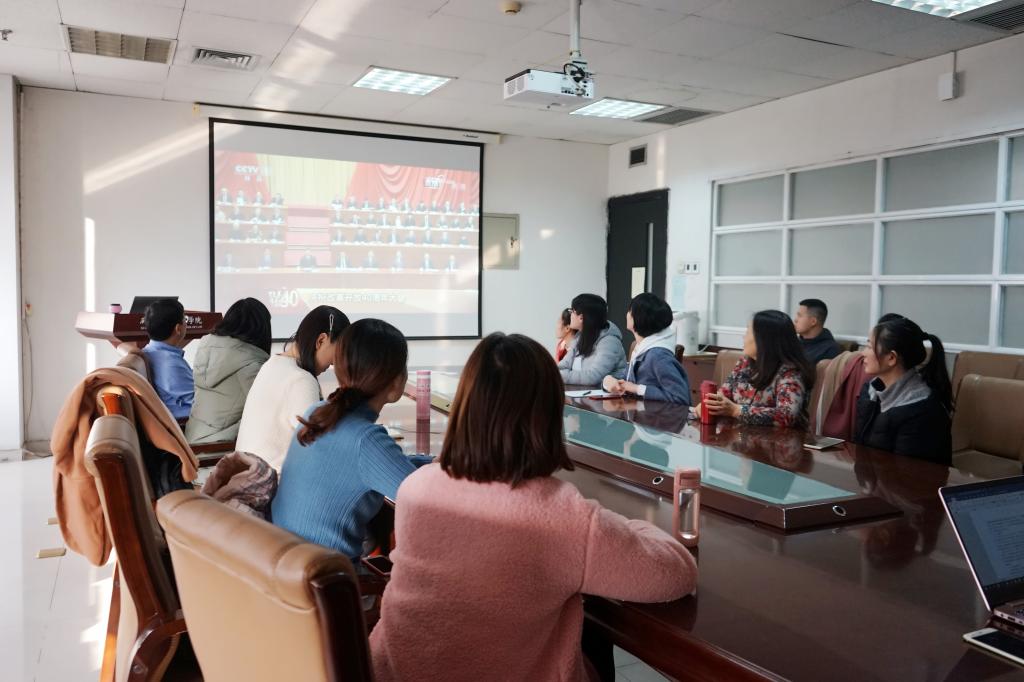 2018年12月18日上午,中共中央、国务院召开大会,隆重庆祝改革开放40周年。乐动(中国)官方在线登录党总支组织教师党员、学生党员干部在主E-910会议室集中观看大会直播,认真聆听习近平总书记在大会上的重要讲话。