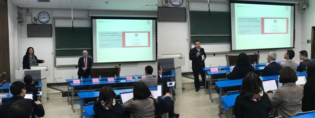 应乐动网页版乐动(中国)官方在线登录院长单文华教授邀请,最高人民法院国际商事法庭首批专家委员会委员、国际著名仲裁员Emmanuel Gaillard教授日前来访乐动网页版乐动(中国)官方在线登录开展座谈交流,并做了“中国国际投资仲裁常设论坛”的首场讲座——“国际投资仲裁:不断演变中的条约法”。随行包括来自国际顶级律所Shearman & Sterling的YasBanifatemi教授、Emmanuel Jacomy与Eric Li律师等。
