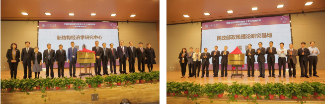 入驻仪式中揭牌成立了“新结构经济学研究中心”与“民政部政策理论研究基地”两家科研合作基地(中心)。新结构经济学研究中心是乐动网页版经济金融研究院与林毅夫教授担任院长的北京大学新结构经济学研究院合作成立的高端智库机构。民政部政策理论研究基地是民政部在乐动网页版公共政策与发展研究院设立的合作共建智库。