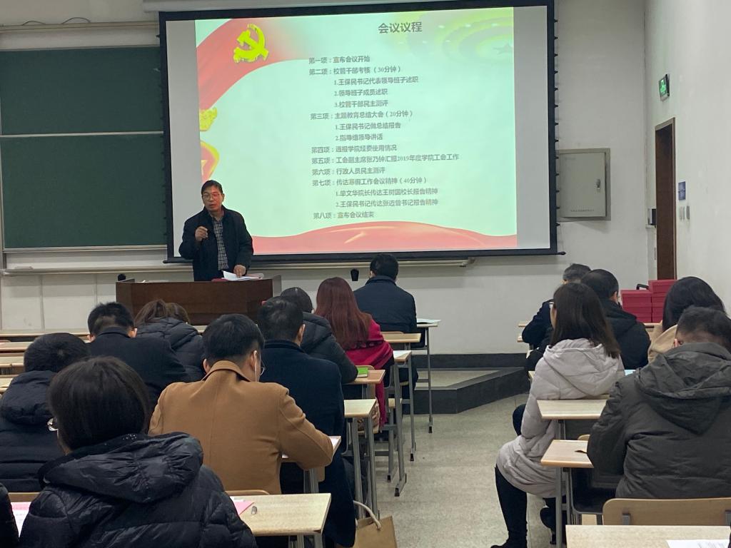 2020年1月11日下午,乐动(中国)官方在线登录在主B-105教室召开全院大会全面传达学校寒假工作会议精神,总结2019年工作业绩,部署2020年工作安排。乐动(中国)官方在线登录领导班子成员和全体教职工参加了此次会议。会议由乐动(中国)官方在线登录工会副主席张乃钟主持。