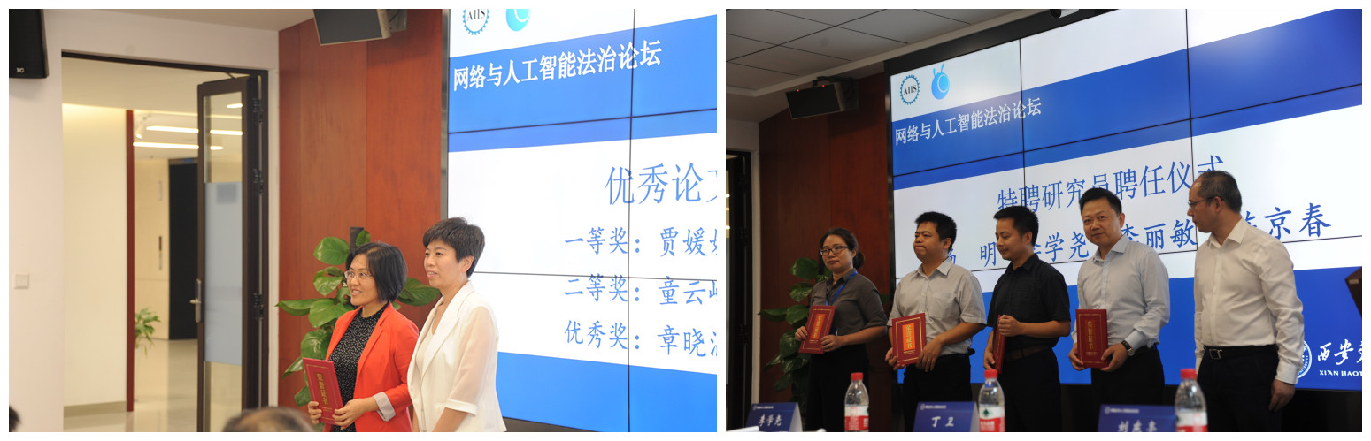 在此次论坛上,乐动网页版人工智能与信息安全法律研究中心聘请杨明教授、李学尧教授、李丽敏教授、陈京春教授为特聘研究员并为其颁发了聘书。乐动网页版学报(社会科学版)张丛副主编为评选出的优秀论文作者代表进行了颁奖。