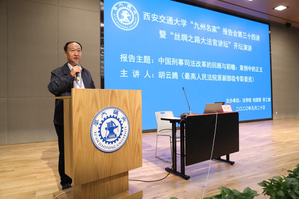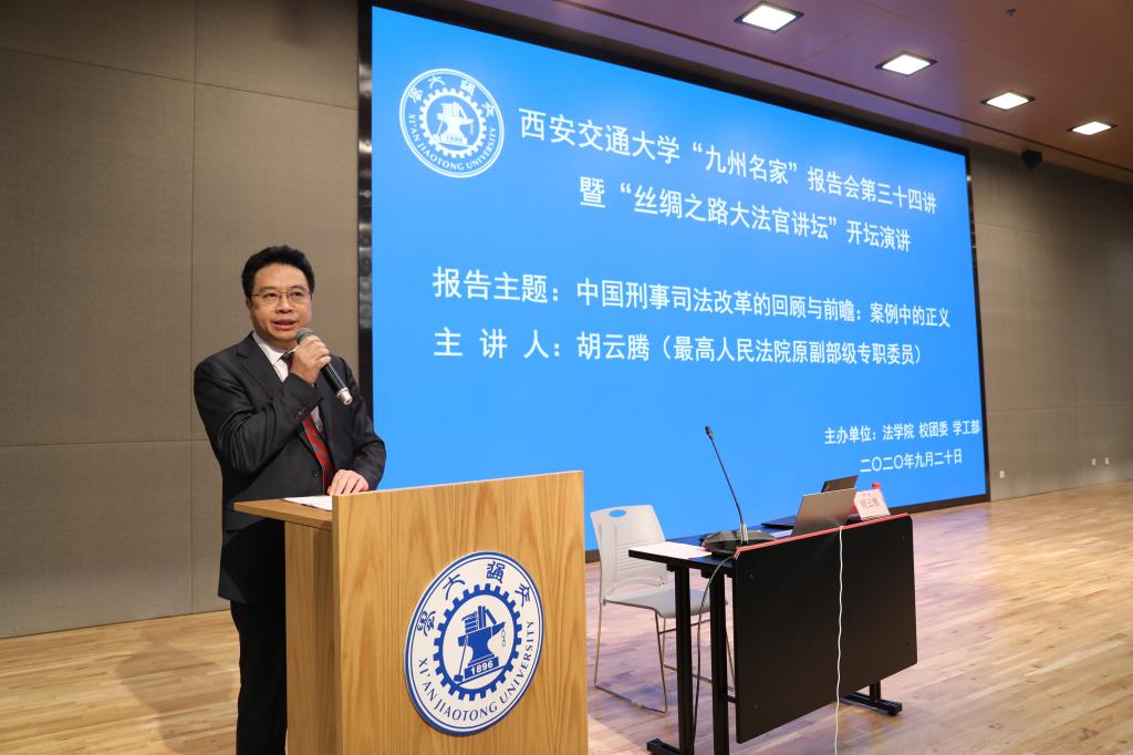 2020年9月20日,最高人民法院原副部级专职委员胡云腾大法官在中国西部科技创新港开坛论道,以《中国刑事司法改革的回顾与前瞻:案例中的正义》为题,畅谈中国司法改革40余年变化与成就。王树国校长在涵英楼11楼会见了胡云腾大法官。校党委副书记赵昌昌出席了报告会并致辞,校团委书记苏翔,陕西省律师协会会长韩永安,贸仲丝路中心秘书长助理蒋红梅,乐动(中国)官方在线登录副院长李万强,乐动(中国)官方在线登录副院长丁卫老师一并出席报告会。报告会由乐动(中国)官方在线登录院长兼国际教育学院院长单文华主持。