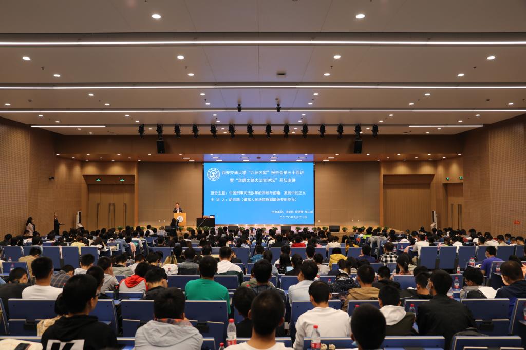 本次报告会是乐动网页版“九州名家”报告会第三十四讲,也开启了“丝绸之路大法官讲坛”的首场报告,亦是乐动网页版“百场报告”和中国西部科技创新港“科创月”的系列活动之一。本次报告由乐动(中国)官方在线登录主办,校团委、学工部协办。报告会还吸引了陕西省律师协会、中国国际经济贸易仲裁委员会丝绸之路仲裁中心、西北政法大学等校外单位的法律界人士广泛关注和积极参与,与会嘉宾及全校多学科师生共计500余人到会聆听并参与互动。