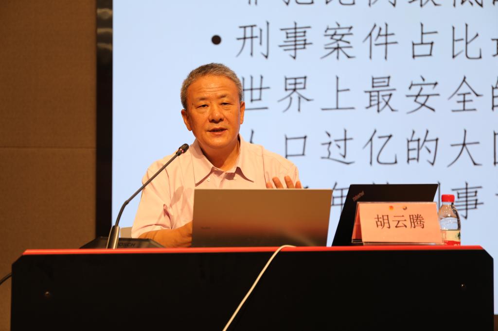 胡大法官的报告分为引言和八大部分展开。引言简要回顾了从1978年四十二年以来刑事司法改革基本历程,并基于刑事犯罪案发率等基本数据强有力的证明了中国刑事司法改革成效显著。报告的主干部分分别从刑事司法理念、刑法体系建设、刑事诉讼制度、刑事诉讼模式、死刑制度、刑事政策、刑事司法公开化、刑事案例指导制度等八个方面系统梳理了中国刑法治理体系改革举措,也指出了现有的不足和未来的改善方法和路径。胡云腾法官根据其多年治学和司法实践经验,结合实际案例,就刑事司法理念的变革进行了重点解读。他认为“刑事司法变革是40年来最大的变革,解放思想是最大的改革举措,最大的改革成果是树立了一系列新的刑事司法理念。”通过一个个鲜活的司法案例的介绍,胡云腾大法官为听众生动展示了:在新式司法理念不断的转化和革新的指引下司法机关在保护人权,提高刑事案件办理、审判质量、预防、纠正冤假错案方面所进行的勇敢探索和可贵进步。