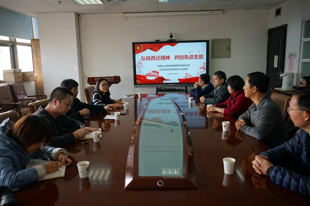 2020年12月10日下午,立法与党内法规中心党支部与陕西省人民检察院第四检察部党支部举行了以“弘扬西迁精神,共创先进支部”为主题支部联合共建座谈交流活动,并签署支部共建协议。双方主要领导及支部党员代表共20余人参加活动。