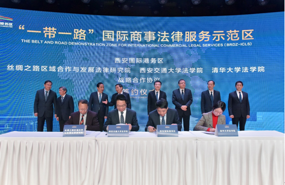 2019年8月,最高人民法院与陕西省、西安市将示范区正式定名为“‘一带一路’国际商事法律服务示范区”并决定在西安国际港务区建设实施。2020年5月,国务院召开专题会议将该示范区确定为国家支持陕西省的重点工作之一。同月22日,习近平总书记在国务院上报的关于支持在陕西西安建设该示范区等事项报告上圈批支持。12月1日,司法部在陕西西安揭牌设立中国-上海合作组织法律服务委员会西安中心、“一带一路”律师联盟西安中心、西安“一带一路”国际商事争端解决中心以及国家生物证据基地(“三中心一基地”)。目前,占地近50亩,集最高人民法院第六巡回法庭、第二国际商事法庭及其“一站式”争端解决平台于一体的示范区主体建筑——西安“融解决中心”也已经在港务区建成封顶。同时,一批知名法律研究和服务机构已入驻示范区,开展了国际商事争议解决发展论坛、首届中欧班列法治论坛西安分会场等活动,形成了丰富高效的国际商事法律交流合作机制,”一站式“国际商事争端解决机制正在逐步完善,”一带一路“国际商事法律服务示范区的聚集与示范效应已经凸显。