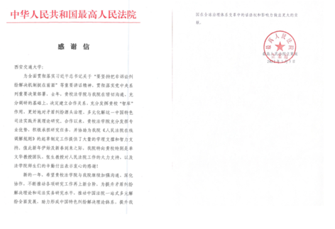 近日,最高人民法院立案庭致函我校,就我院乐动(中国)官方在线登录单文华教授团队参与最高人民法院工作表示感谢。