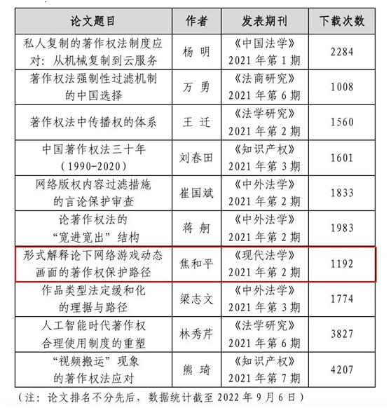 (“2021年度著作权热点问题研究十佳论文”一览表)