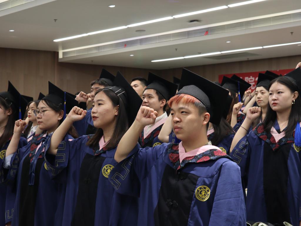 作为法律学子,在即将奔赴祖国各地建功立业之际,全体毕业生在张乃钟老师的带领下庄严宣誓《乐动网页版法科生誓词》。