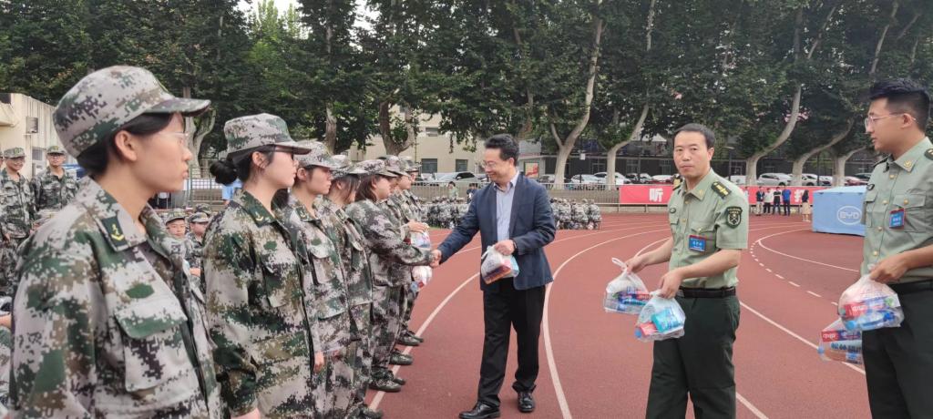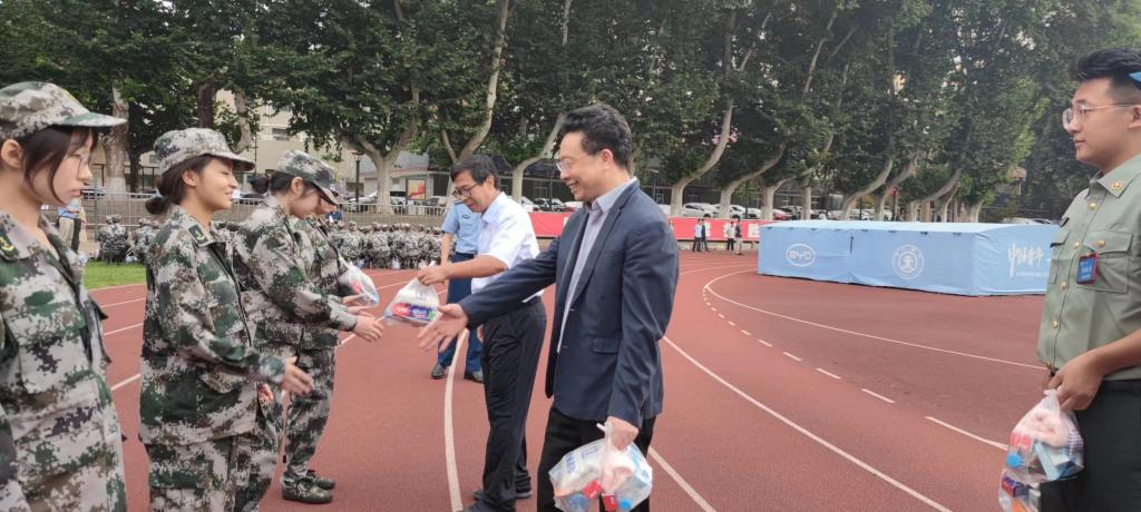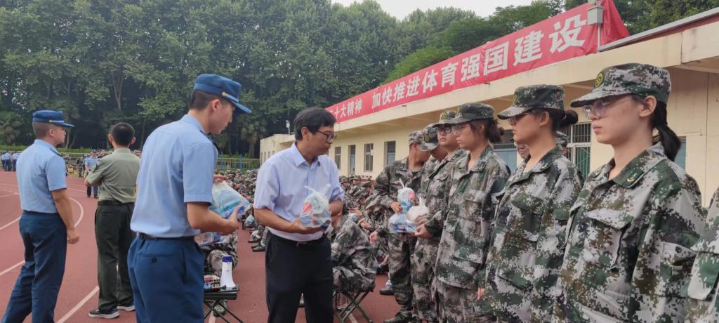 之后,单文华院长和王保民书记一起为教官、指导员和同学们送上“慰问大礼包”,逐一将慰问品送到教官、指导员和同学们的手中,给炎炎夏日带来缕缕清凉。