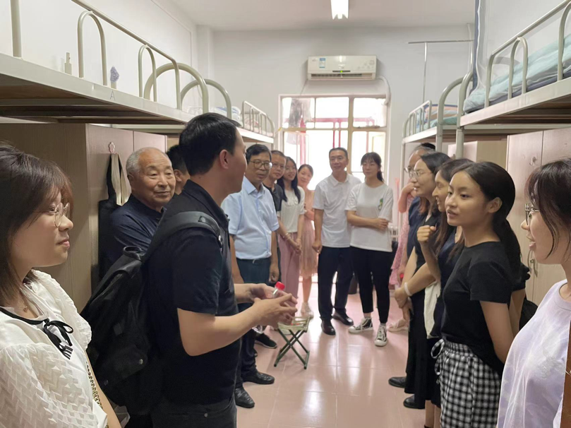 会后,王保民书记及丁卫副院长走访本科生新生宿舍。在宿舍走访过程中,学院书院领导与新生及其家长深入沟通,询问同学们可能遇到的学习生活问题,解答新生对于未来生活的疑惑,鼓励同学们在新的征程上重新出发,珍惜学习时光,努力学有所成,维护同学关系,构建文明宿舍,成为德智体美劳全面发展的新时代青年。