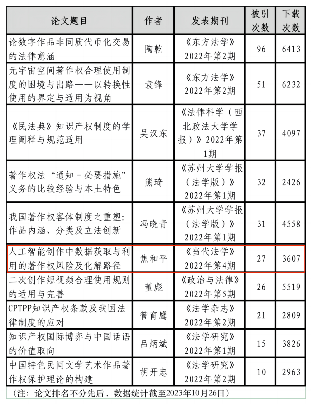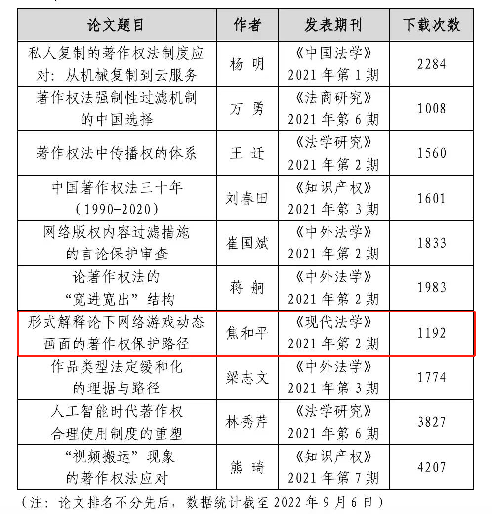 2022年度著作权热点问题研究十佳论文一览表