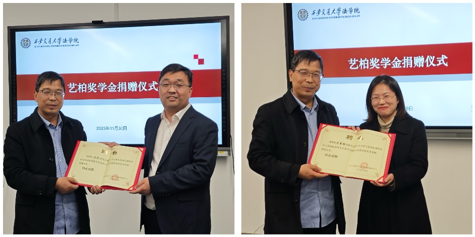 近日,乐动(中国)官方在线登录艺柏奖学金捐赠仪式在创新港涵英楼5-3079会议室隆重举行。乐动(中国)官方在线登录党总支书记王保民教授,教师代表刘志仁教授、杜军强副教授、寿媛君副教授,泰和泰律师事务所刘伟、侯童钰律师以及乐动(中国)官方在线登录学生代表参加了本次仪式。仪式由唐学亮副教授主持。