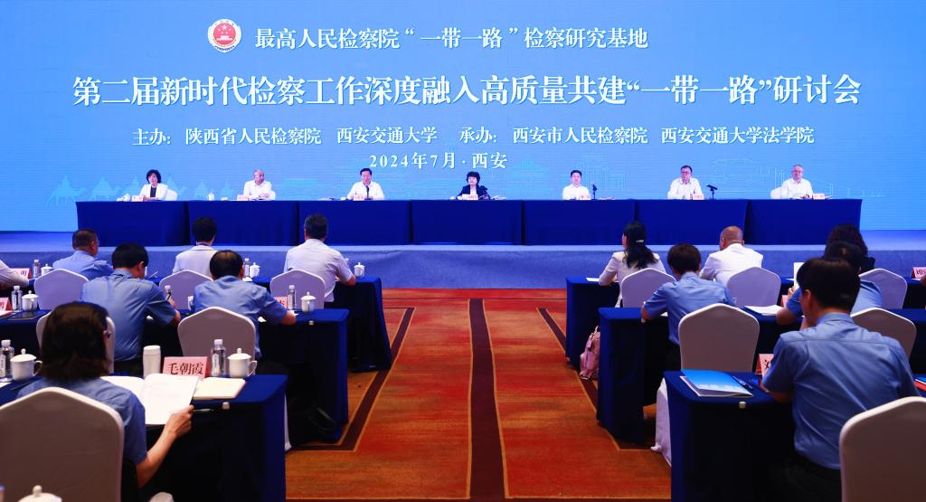 7月10日,最高检“一带一路”检察研究基地第二届新时代检察工作深度融入高质量共建“一带一路”研讨会在西安召开。最高检党组成员、副检察长葛晓燕,省委常委、省委政法委书记刘强,乐动网页版党委书记卢建军出席并讲话。省检察院党组书记、检察长王旭光主持开幕式。全国人大代表方燕、全国政协委员祁志峰、省人大代表杨艺媛、省政协委员刘国兴,最高检检察理论研究所所长郭立新、法律政策研究室一级高级检察官吴孟栓、国际合作局二级巡视员龙梅,省委政法委副书记丁恒,西安市委副书记、市委政法委书记李婧等参加活动。