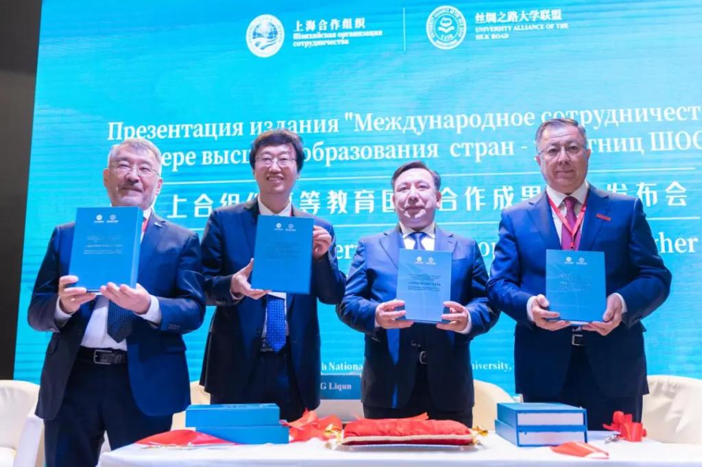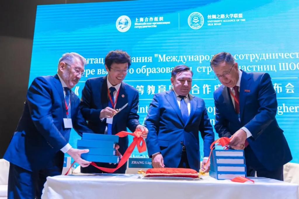 会上,《上合组织高等教育国际合作成果集》(以下简称《成果集》)正式发布。在与会嘉宾的共同见证下,哈萨克斯坦科学与高等教育部长萨亚萨特·努尔别克、乐动网页版校长张立群、阿里法拉比哈萨克国立大学校长詹塞特·图依梅巴耶夫以及阿斯塔纳信息技术大学执行校长谢里克•奥米尔巴耶夫共同为《成果集》新书发布剪彩。