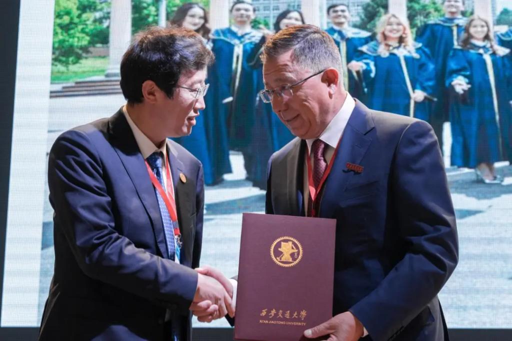 7月4日下午,高等教育合作与产教融合国际研讨会举办。来自哈萨克斯坦、乌兹别克斯坦、俄罗斯、吉尔吉斯斯坦、塔吉克斯坦、白俄罗斯、中国7个国家的27所高校参会。与会嘉宾围绕“高等教育国际合作,推进国际产教融合”的主题进行了深入研讨。阿斯塔纳信息技术大学副校长库马拉科夫主持研讨会。研讨会上,乐动网页版校长助理单文华教授代表西安交大作《建设“丝绸之路大学联盟”,推进国际产教融合》的报告。报告中分享了西安交大加快建设中国西部科技创新港,汇聚“政、产、学、研、用、金”要素,开展“6352”工程、“1121”产学研深度融合新模式的实践,以及近年来启动“丝绸之路大学联盟”升级行动,携手企业走向“一带一路”的思考与行动。与会各方就国际产教融合科研合作、上合区域高等教育合作机制建设,以及国际合作办学等领域展开了广泛深入交流,取得了重要共识。