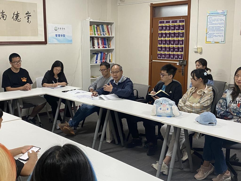 在各位领导和老师的发言后,座谈会进入一对一指导环节。每个学生都获得了与老师们面对面交流的机会,王老师帮助学生核对学分完成情况、确认培养计划、认定课程等,为学生们提供了个性化的学业指导和帮扶。